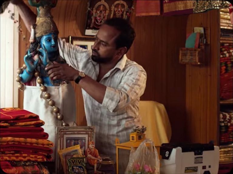 நசீர் படத்தின் இறுதிக் காட்சியை ஒட்டியே மொத்த கதையும் நகர்கிறது. இந்துத்துவ கும்பலால் வீழ்த்தப்பட்டு சாலையில் உயிரற்றுக் கிடக்கும் நசீரைப் புரிந்துகொள்வதற்காகவே முந்தைய அனைத்துக் காட்சிகளும் எழுதப்பட்டிருக்கின்றன. ஆனால், அவை அனைத்தும் ‘நல்ல முஸ்லிம்’ என்ற பொதுச் சமூகத்தின் வரையறைக்குட்பட்டு உருவாக்கப்பட்டிருக்கின்றன. வழக்கமாக தன் மனைவியை அடிமைப்படுத்தும் முஸ்லிம் ஆண் வேடமாக இல்லாமல், மனைவி மீது அதீத நேசம் கொண்ட கணவனாக நசீர் இருக்கிறான். அதிகாலை பாங்குச் சத்தம் கேட்டும், தொழுகைக்குச் செல்லாதவன். தான் பணியாற்றும் கடையில் கிருஷ்ணர் சிலையைத் தூய்மைப்படுத்தி, அங்கிருக்கும் இந்துக் கடவுள் படங்களுக்கு மாலையிடுபவன். சைவப் பிள்ளையின் வீட்டு வேலைக்கு ஒத்தாசை செய்பவன். தன்னுடன் பணியாற்றுபவன் முஸ்லிம்களைப் பற்றி அவதூறாகப் பேசும்போதும் அதனைக் கண்டும் காணாதிருப்பவன். தனது பெயரையோ, தான் வாழும் பகுதியையோ தவிர நசீர் எந்தவித இஸ்லாமிய அடையாளங்களையும் தாங்கியிருப்பவன் அல்ல.